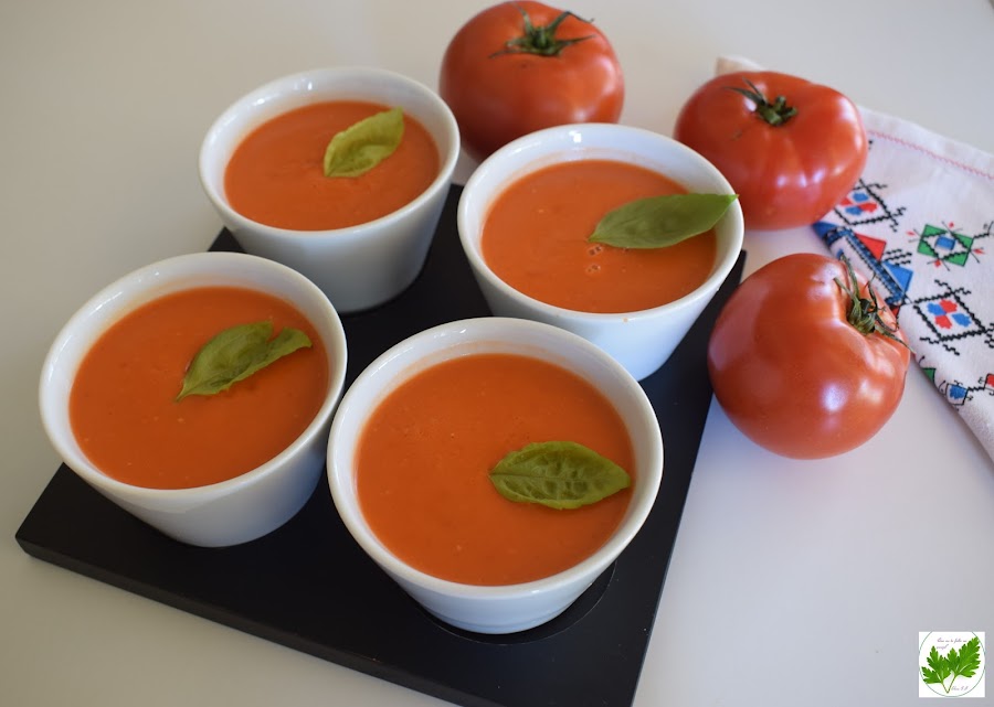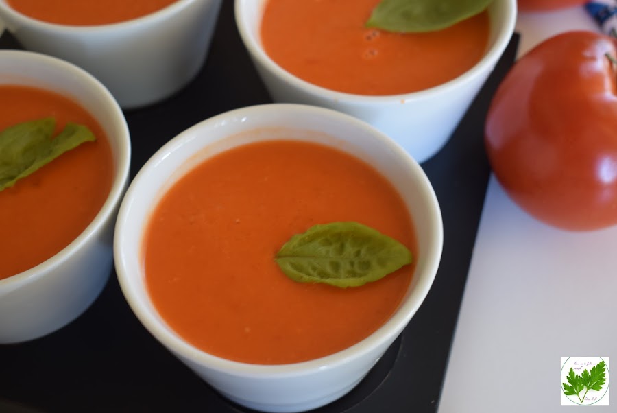 Hace unos días, mi amiga Marisa G. publicó en Thermofan una deliciosa crema de tomate y albahaca. Me gustaron mucho todos los ingredientes que llevaba y en seguida pensé convertirla en una gazpacho fresquito, lleno de buenos sabores, aromas y de color natural incomparable.