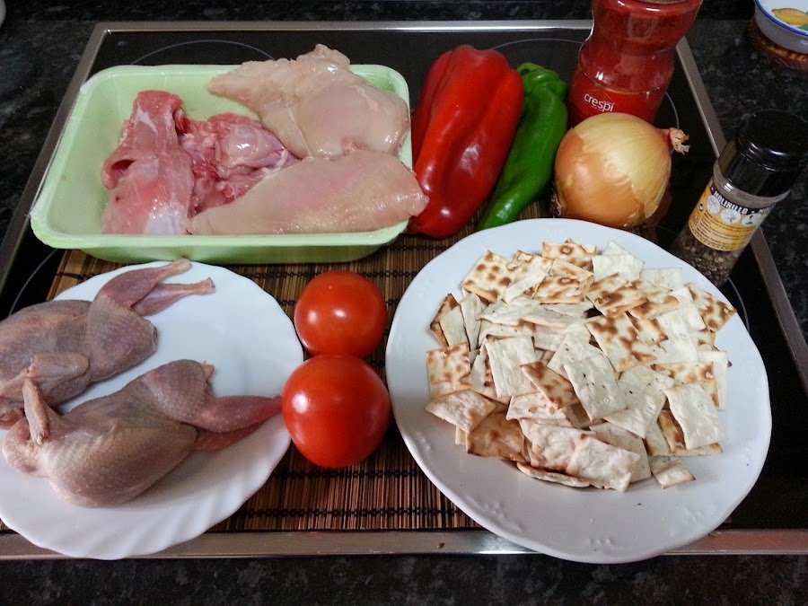 Consiste en un guiso con torta cenceña manchega troceada. El guiso está acompañado por carne de piezas menores como pueden ser conejo, pollo, liebre o perdiz. También se suelen poner setas. Fuente: Wikipedia.