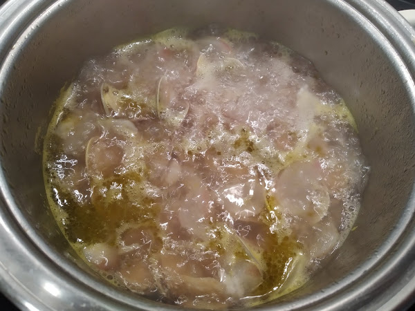Una vez que las almejas estén abiertas, apartar del fuego y reservar caliente.