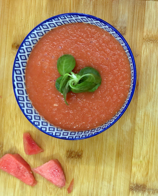 Según me cuenta Jesús, cuando planteó hacer la receta en su entorno familiar lo miraron con rareza. Desconfiaban de que aquel experimento tan veraniego resultara una frivolidad poco sugerente. Una combinación de sabores poco agradable, en definitiva. Puede que, en la teoría, lo fuera. A mí me ha encantado por eso no quiero que os lo perdáis.