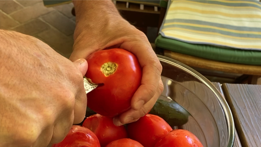 Limpia los tomates y retírales el pedúnculo.