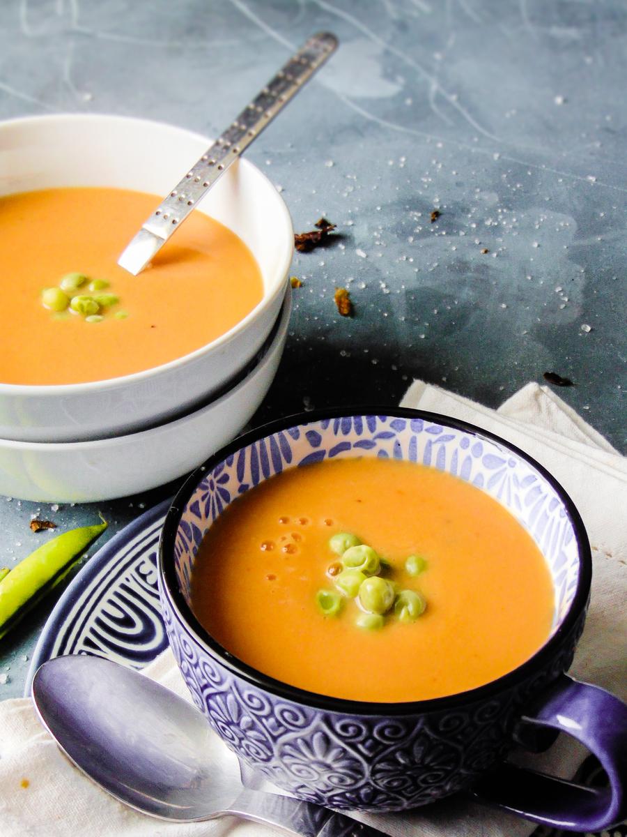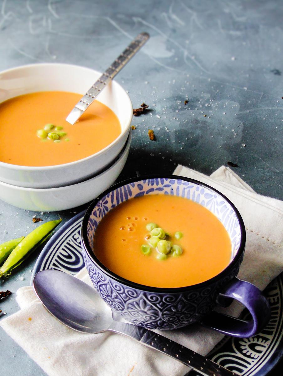 Y es que así es este fácil, nutritivo, saludable, refrescante, veraniego y tropical gazpacho. Una mezcla de lo dulce del mango con la acidez típica del gazpacho y un toque de picante.