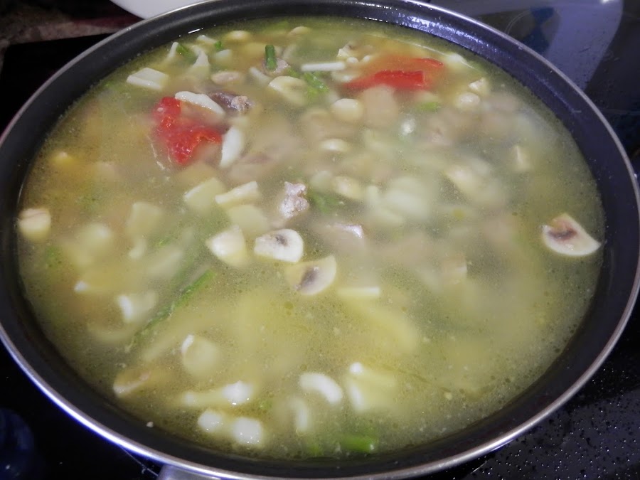 Cuando ya esté, añadimos el agua y dejamos cocer unos tres cuartos de hora.