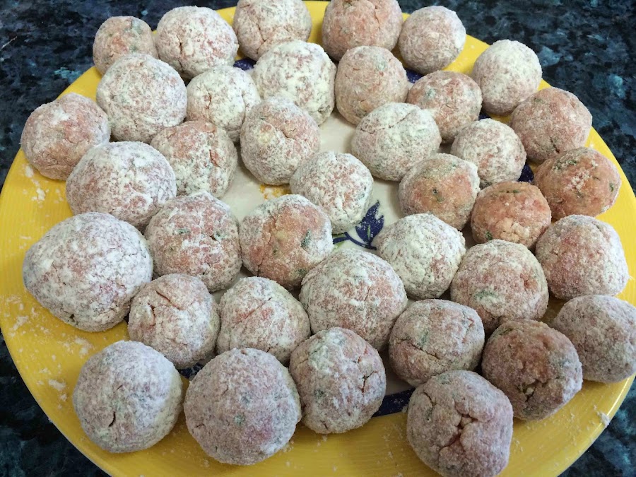 Formamos nuestras albóndigas. Es interesante que las hagamos pequeñitas de tamaño de bocado para que sea más agradable degustar este plato.