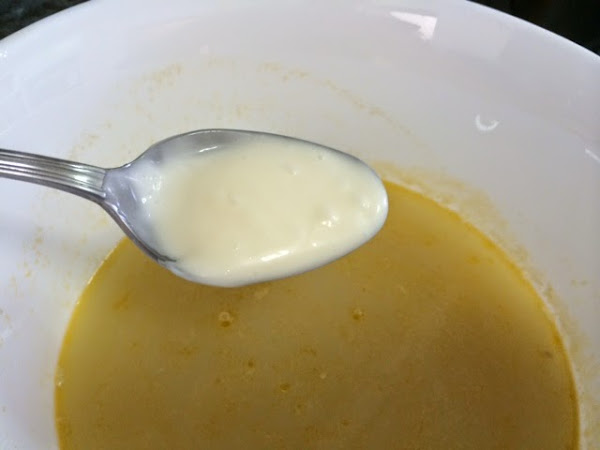 Hacemos una mayonesa con los huevos, el zumo de medio limón, un poco de sal y aceite de girasol.