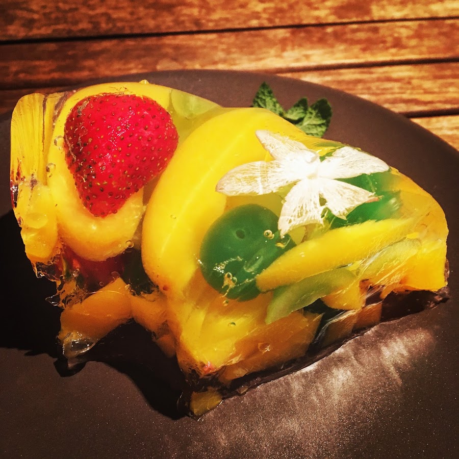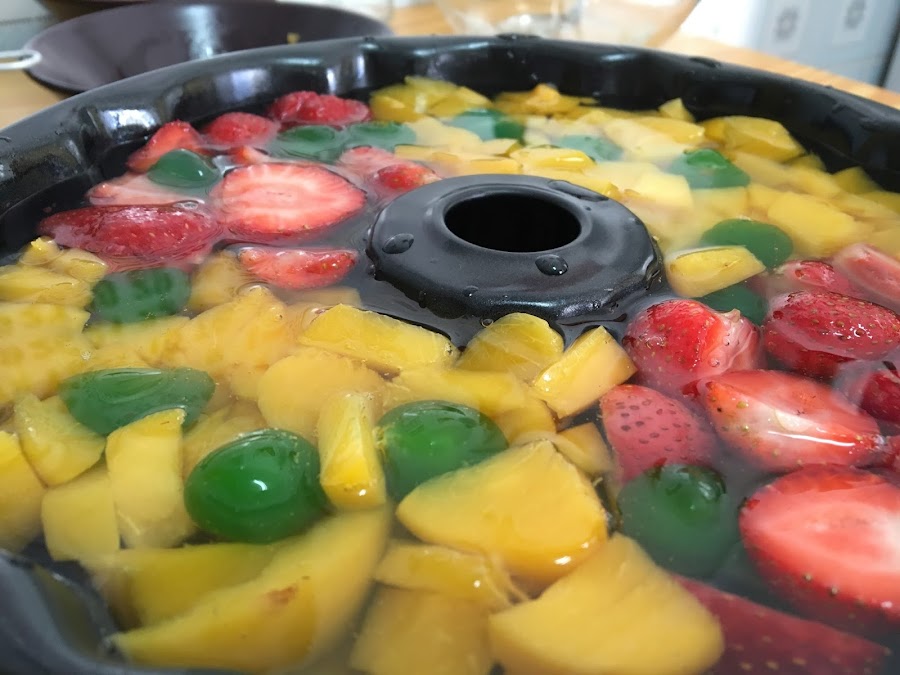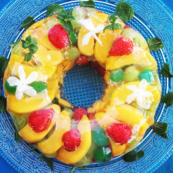 (Gelatine mit Obst und Jasminblüten . Audrey Hepburn Kuchen)