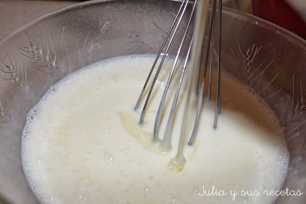 Le vamos echando la leche condensada poco a poco moviendo constantemente. Dejamos que se enfríe un poco, pero que no llegue a coger consistencia.