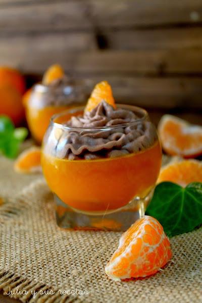 Hoy os traigo un postre muy rico, fácil y refrescante, una gelatina de mandarina con trufa de chocolate que hará que rebañéis el vaso!!