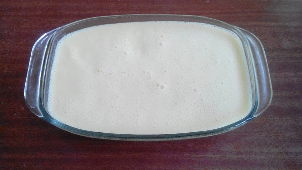 Vertimos la mezcla en un molde de gelatina o tipo pyrex para que podamos desmoldarlo más fácilmente y llevamos a refrigeración por al menos 4 horas o de preferencia toda la noche.