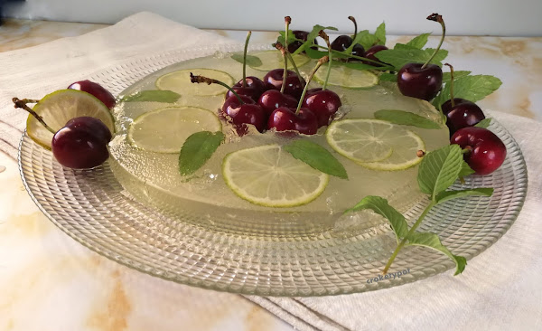 He querido hacerlo en formato grande con cerezas para compartirlo pero podemos hacerlo con las formas, moldes o vasitos que más nos gusten, eso sí, siempre con lima, la lima es imprescindible.