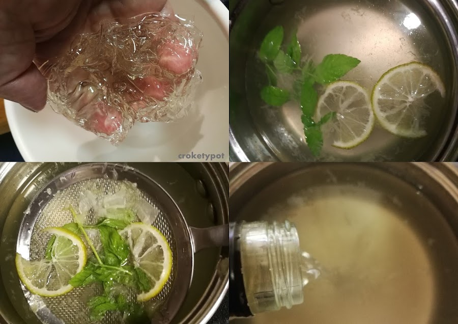 Mientras preparamos el molde donde vamos a presentar la gelatina. En esta ocasión he utilizado un molde de rosco de silicona, lo he decorado con rodajas de lima finas y hojas de menta.