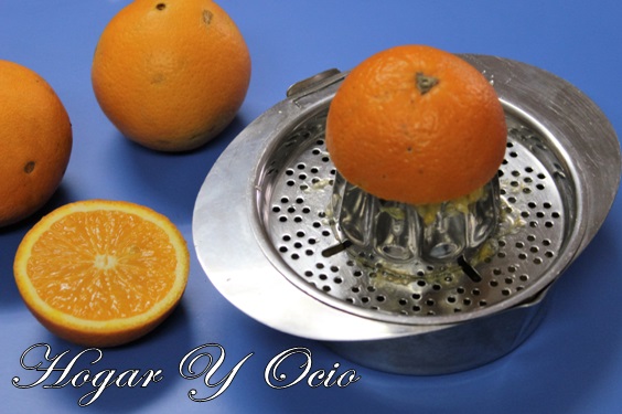 1. Exprimimos las naranjas hasta obtener la cantidad de zumo indicada (reservamos las pieles de las naranjas). Colamos el zumo para que no vaya nada de pulpa.