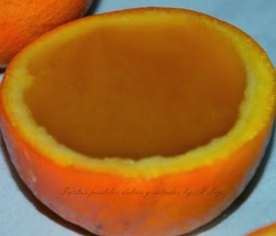 Os propongo esta gelatina de naranja preparada con zumo natural de la misma naranja y presentada en su propria cascara o en el recipiente que más nos guste.