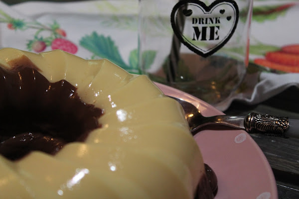Dejamos enfriar. Cuando la gelatina de chocolate se haya atemperado, la vertemos cuidadosamente sobre la gelatina de vainilla y dejamos refrigerar nuevamente durante unas 2 horas.