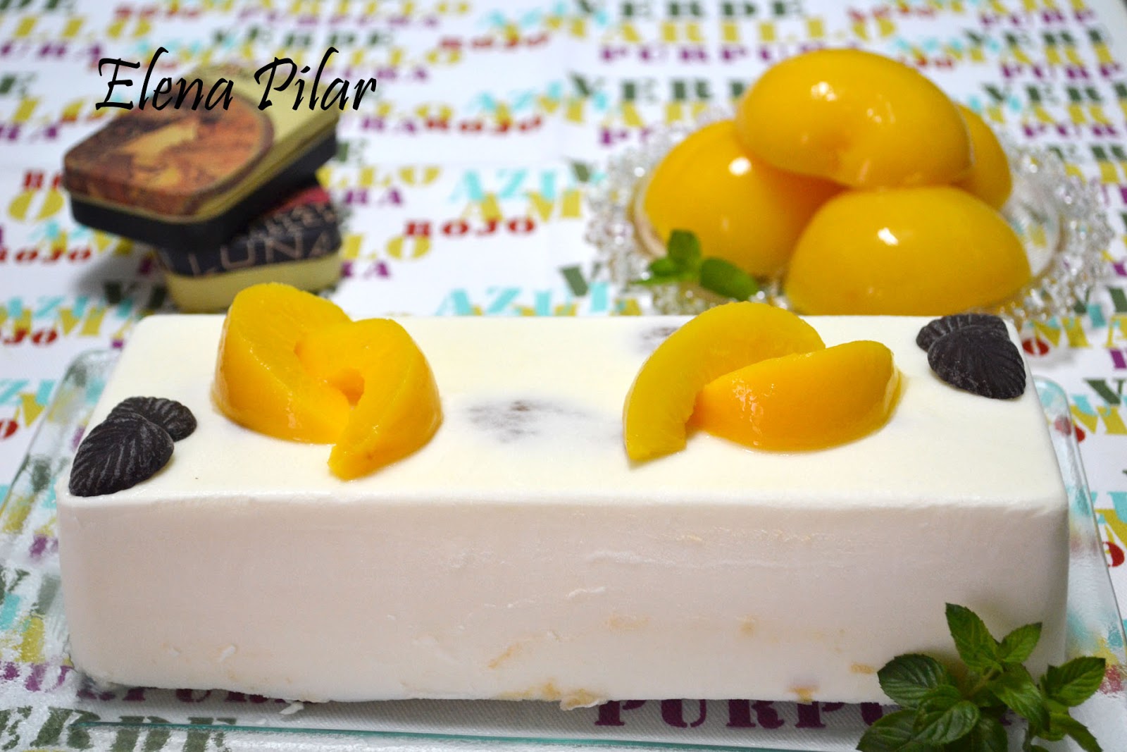 (cambié los albaricoques por melocotones y añadí gelatina a la mezcla de nata (crema de leche) y yogur para que quedara bien firme sin necesidad de mantenerla en el cogelador)INGREDIENTES