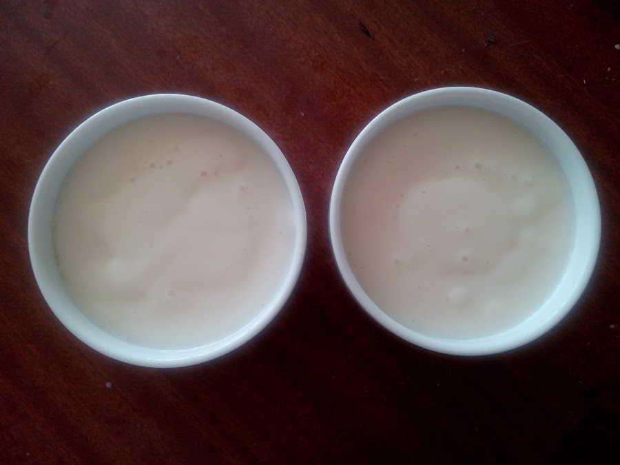 Vertimos la mezcla en dos recipientes pequeños de aproximadamente 300 ml, previamente engrasados y refrigeramos por un mínimo de 2 horas.