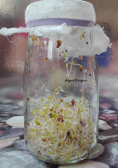 Cuando vi un sobre de semillas de brotes ecológicos que ponía: "Semillas aptas para Bandejas germinadoras o Botes de cristal" no pude resistirme.