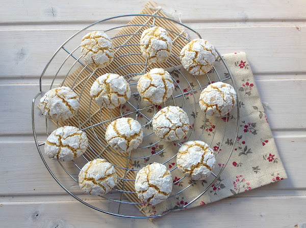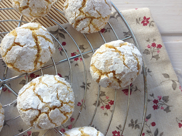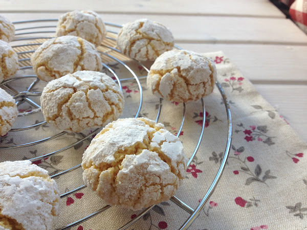 4. Se van haciendo pequeñas bolitas con la masa, se rebozan primero en azúcar normal y después een azúcar glas y se disponen en una bandeja de horno cubierta con papel de hornear. Hay que dejarlas separadas ya que se expanden un poco al hornear.