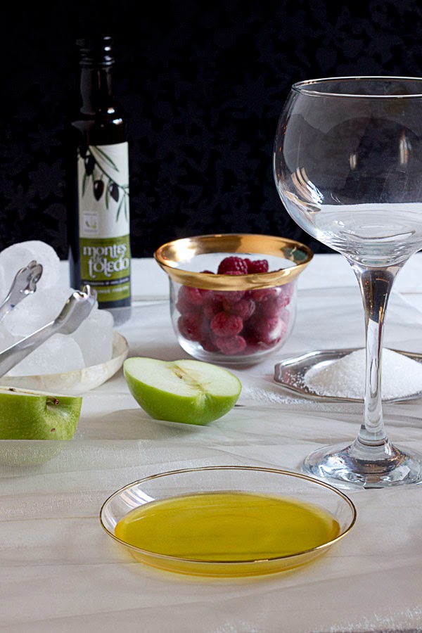 Para éste gin tonic he usado AOVE DO Montes de Toledo, de la variedad de aceituna cornicabra, autóctona de Castilla La Mancha, que le aporta un matíz picante muy agradable.