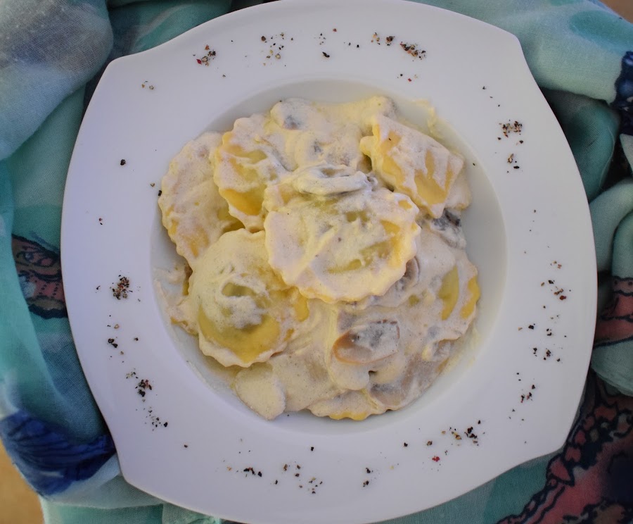Mi idea era acompañarla de una salsa de champiñones y al ir a comprar la pasta, me encontré estos girasoles rellenos de setas, y no dude en cogerlos ya que combina fenomenal con la salsa mencionada antes.