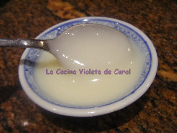 En un bol ponemos el queso y vamos añadiendo poco a poco el azúcar, mezclándolo bien con un tenedor, añadimos el zumo de limón y seguimos mezclando. Quedará con una textura parecida a la de la leche condensada.