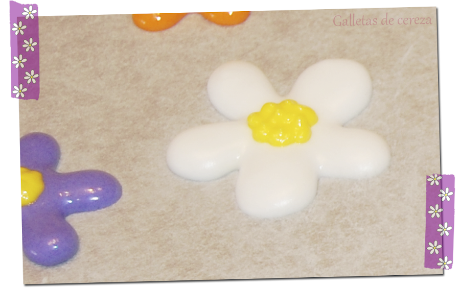 Hacemos todas las margaritas y cuando se empiecen a secar les colocamos el centro amarillo.