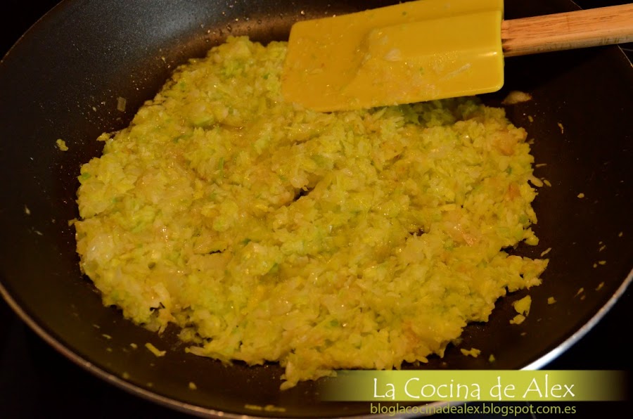 PREPARACIÓN:En primer lugar vamos a poner la patata a cocer envueltas en papel transparente en abundante agua hasta que estén bien tiernas, este paso también lo podéis hacer asando las patatas en el horno. Lo importante es que cojan el menos agua posible. Mientras cocemos las patatas vamos a ir preparando la salsa de curry, picamos los dientes de ajo, la cebolla y el puerro y lo ponemos a pochar en una sarten con un poco de aceite de oliva.