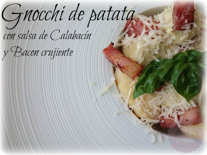 Ponemos una olla con abuentande agua a calentar. Cuando comience a hervir echamos los gnocchi, que estarán listos cuando suban a la superficie. Escurrimos y montamos el plato: ponemos los gnocchi, vertemos la salsa, colocamos el bacon crujiente por encima y ya si queréis rallamos un poco de queso parmesano y listo!