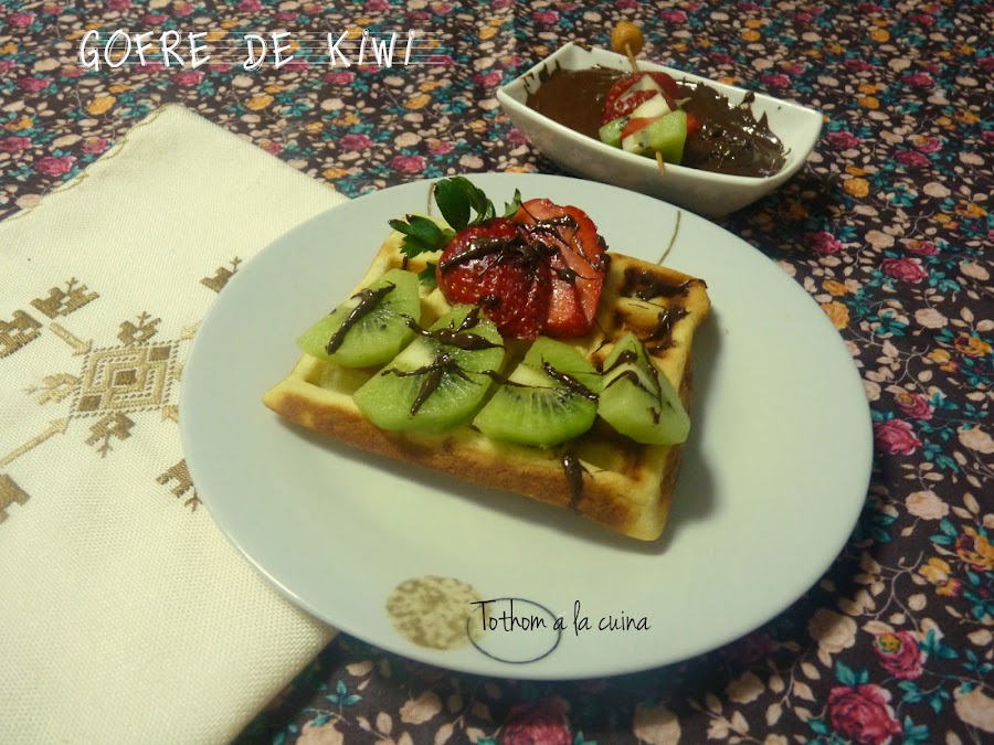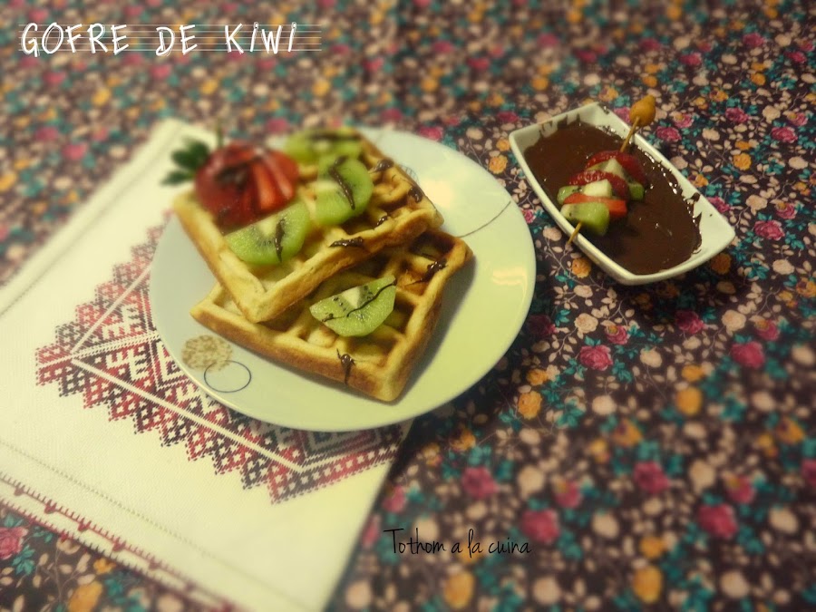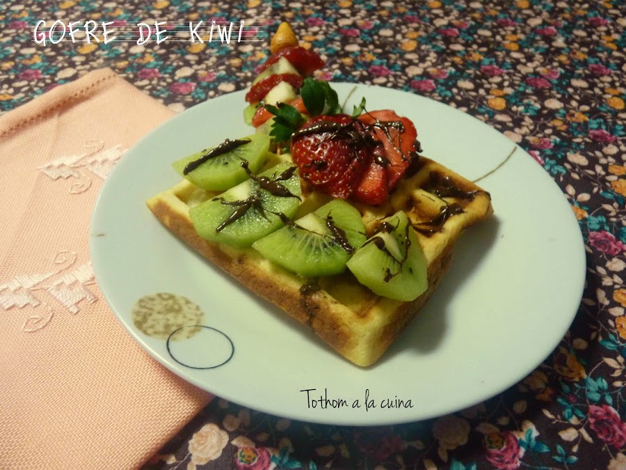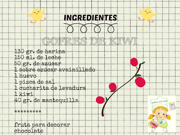 He de deciros que esta receta no fue mi primera opción. De hecho la primera opción la hice pero no "llegó" a buen puerto y estaba dispuesta a repetirla porque tiene una pinta, ummmmm. Mientras maduraban los kiwis para la segunda oportunidad, me enteré que el día 25 (hoy) se celebraba el día del gofre, así que de inmediato pensé en fusionar kiwi+gofre. Con una receta tendría los dos eventos del día. A parte que estrenaría la gofrera que hace tiempo compré.