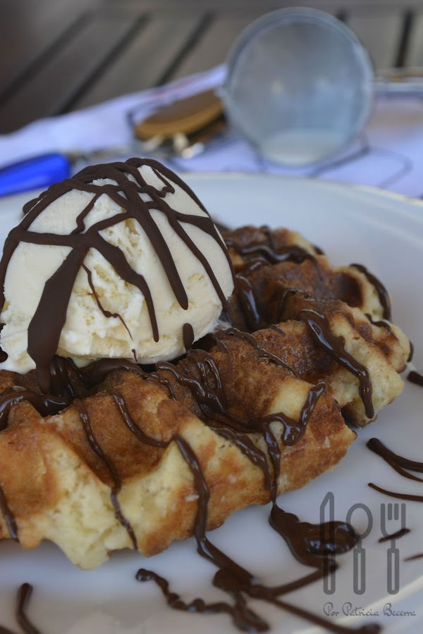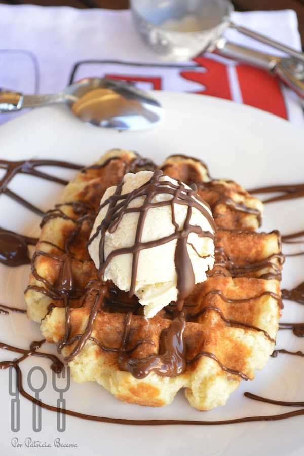 Y estáis pensando...ahora, en pleno diciembre, ponerle helado...?? Pensadlo así: el gofre recién salido, calentito y rico. El helado por encima y el chocolate caliente por encima del helado...y a comer...¿a que ahora si?...Delicioso!