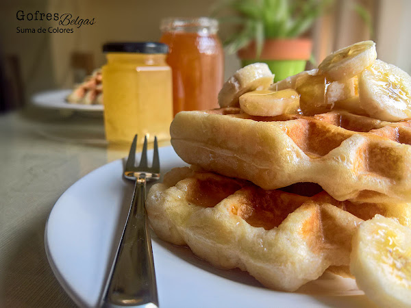 Encender la gofrera a temperatura media (en mi caso: posición 2). Engrasar con un poco de mantequilla. Colocar las porciones en la gofrera y cerrar (no es necesario poner mucho cuidado en extender la masa pues al cerrar la gofrera se extiende bastante bien). Cocinar durante 3-5 minutos, o hasta que esté dorada a nuestro gusto.