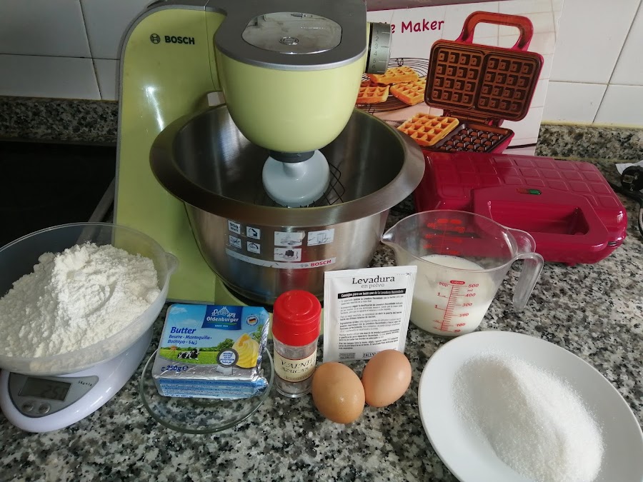 Ponemos a calentar la gofrera y le ponemos un poco de aceite con ayuda de una brochita