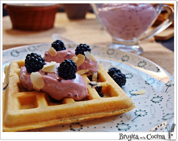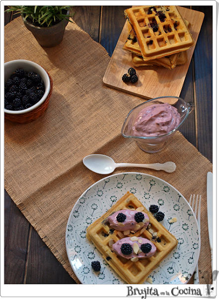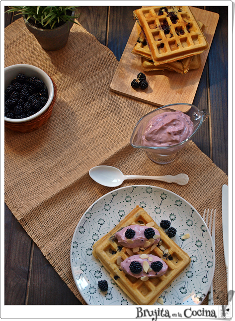Bueno que hoy mi propuesta son estos grofres con almendras y ricas moras recogidas con ayuda del peque. Para su elaboración he utilizado leche de almendra ligera Gerblé que me entró en la Disfrutabox de este mes. Una receta estupenda con el sabor de la almendra y acompañadas de las ricas moras silvestres. No se puede pedir nada más para comenzar bien la semana.