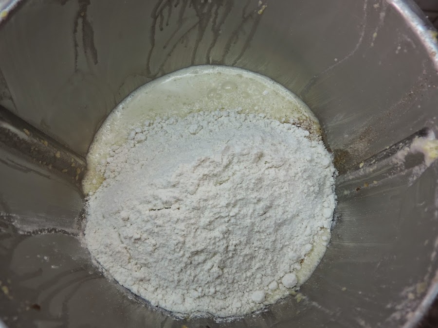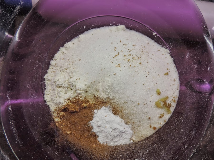 Ponemos en un bol la harina, azúcar, jengibre rallado, canela, nuez moscada y levadura.