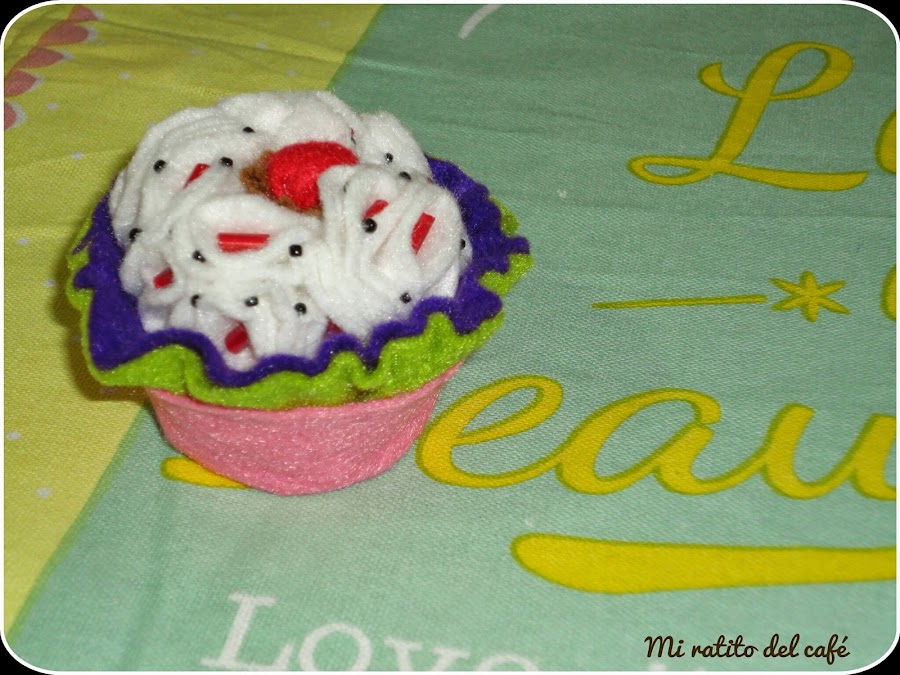 Para que no me pusiera celosa, me regaló este cupcake de fieltro tan mono hecho por ella :)