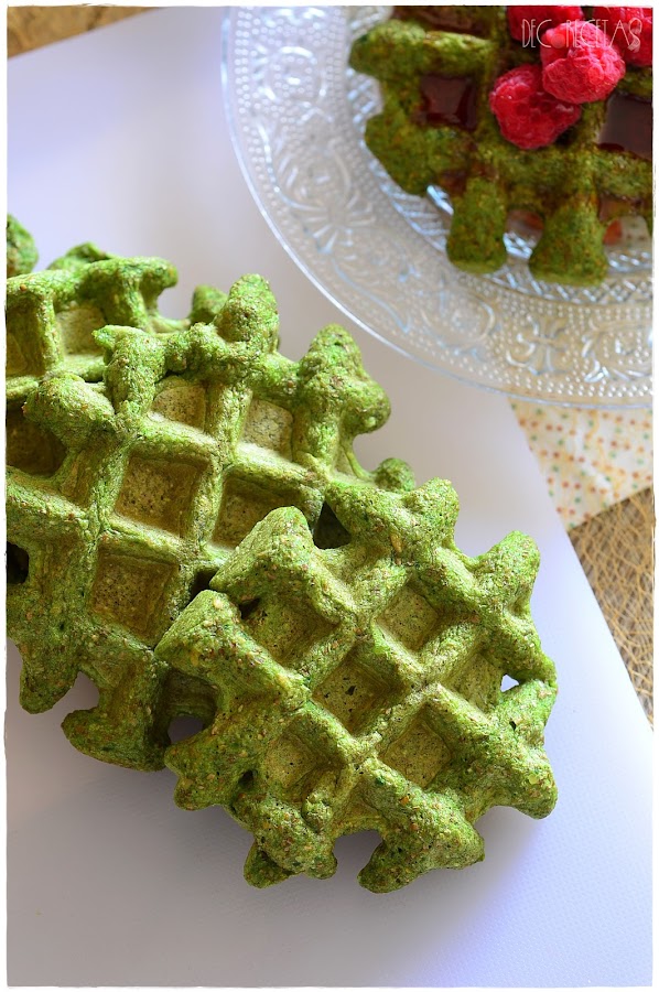 Mezclamos conjuntamente un huevo M, 100gr de avena,100gr de espinacas,media cucharadita de levadura, 30gr de salvado de trigo, 30gr de semillas de lino. Trituramos todo hasta que quede una masa homogénea que introduciremos en esta gofrera caliente