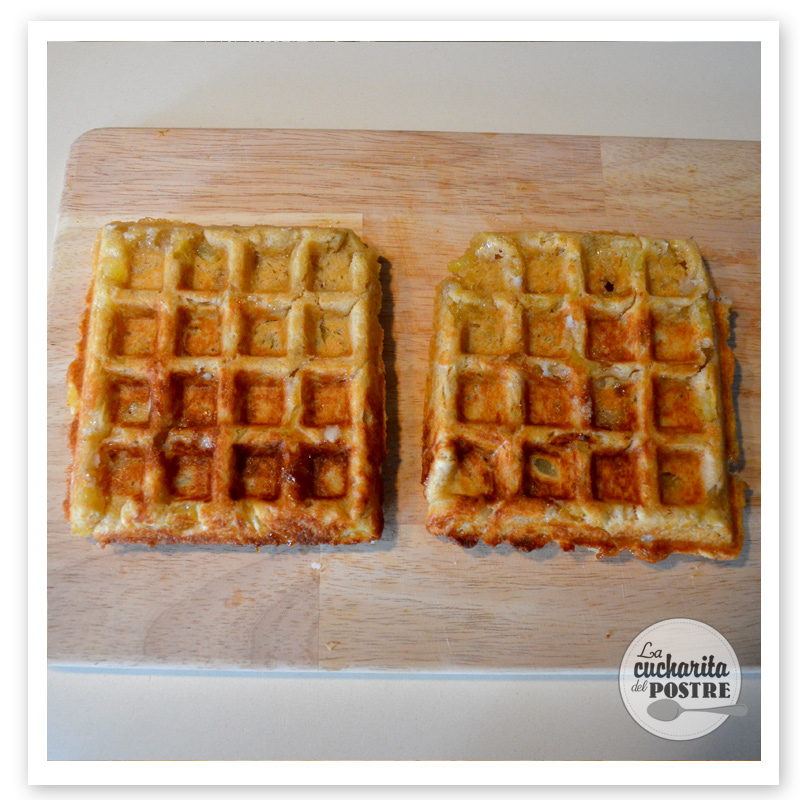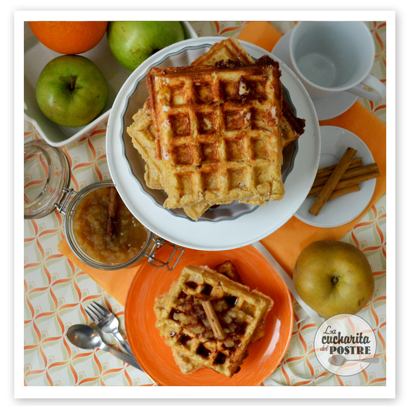 Et voilà! Por el precio de una receta, tenemos dos. Puedes acompañar los gofres con lo que más te guste, pero con esta compota de manzana, ambas cosas un poco calentitas, tendrás un postre brutal. Nosotros, además, le hemos puesto un poquito de sirope de caramelo para que sea imposible decirle que no a estos gofres.
