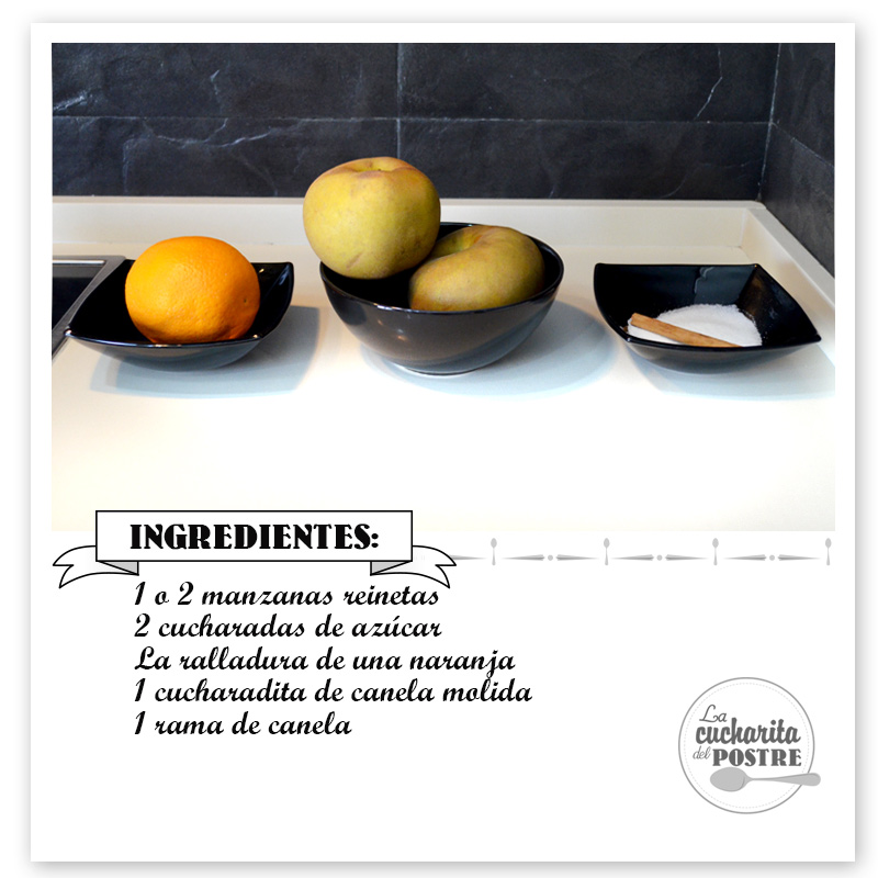 1. Corta las manzanas en trozos pequeños y ponlas en un cazo. Añade ralladura de naranja, canela en polvo, una rama de canela, y el azúcar.