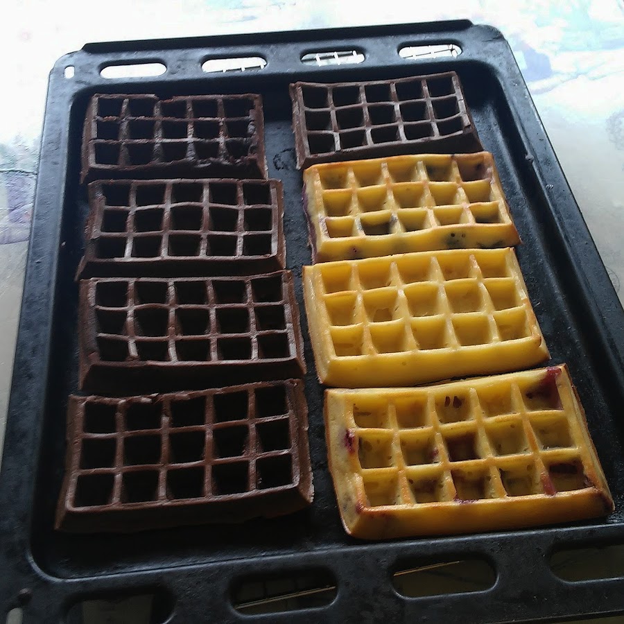 Gofres de chocolate: Añadimos cuatro cucharadas de cacao puro en polvo.