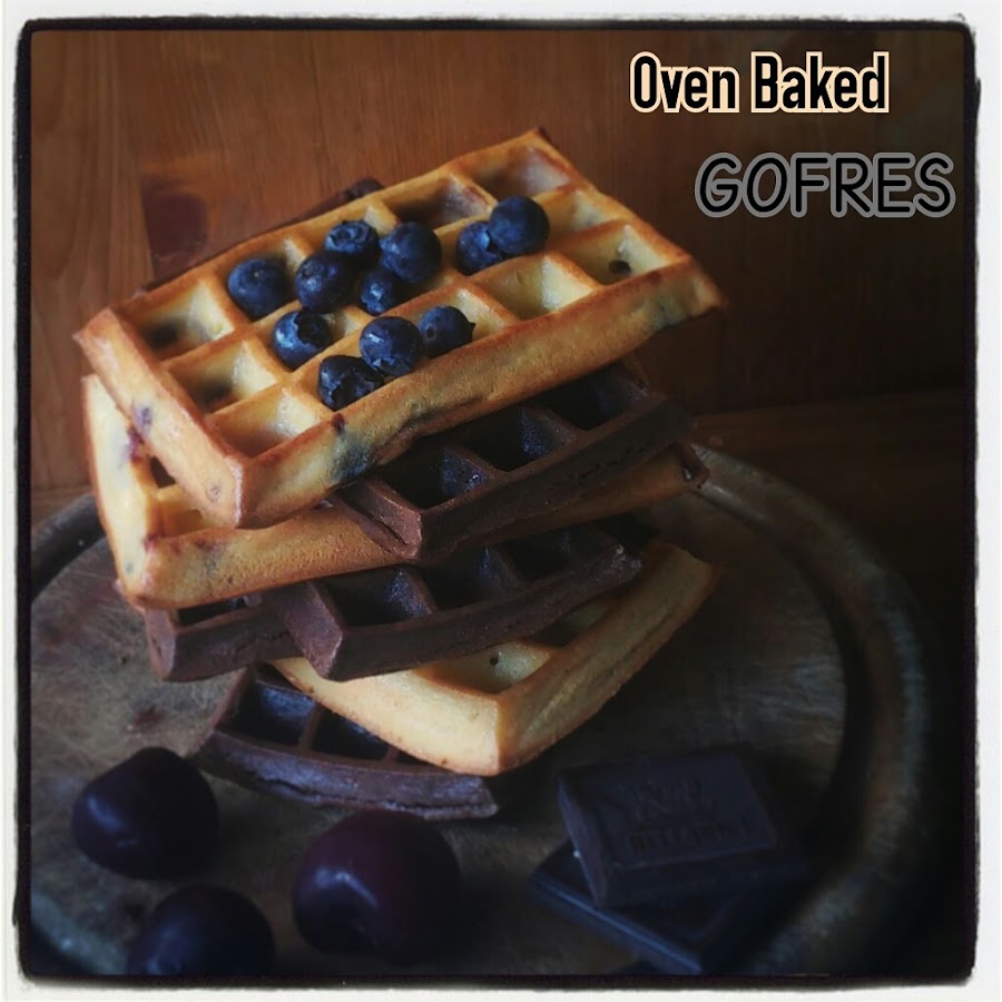 Gofres de arándanos: Unos 100 gr de arándanos cortados en dos.