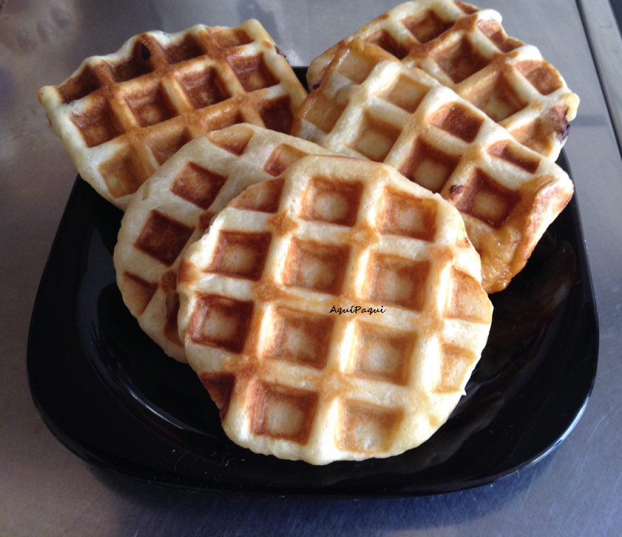 Si queréis hacerlos normales aplastar un poco las bolas y ponerlas en la gofrera caliente, en poco mas de dos minutos cogen color y están listos.