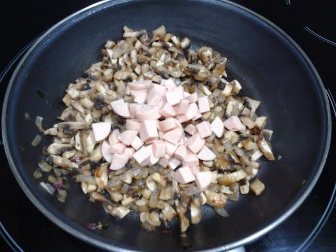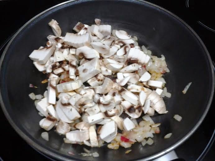 Cuando coja un tono dorado agregamos los campiñones cortados en brunoise.