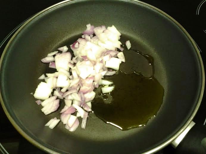 Ponemos un poco de aceite en la sartén y cuando esté caliente echamos la cebolla picadita.