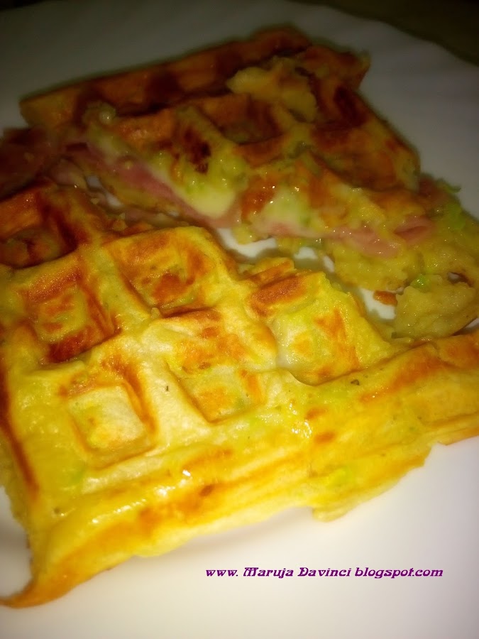 Mi hija se ha aficionado a los gofres, dulces, claro. Pero el otro día pensé y ¿por qué no salados? asi le saco mas partido a mi máquina. Y encontré una receta creo que fue a través de facilisimo.com, para hacerlo con calabacín y como un sandwich y me dije tengo que probarlo.