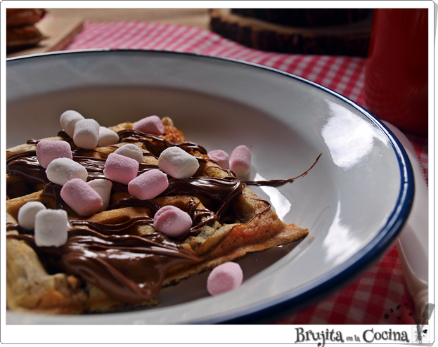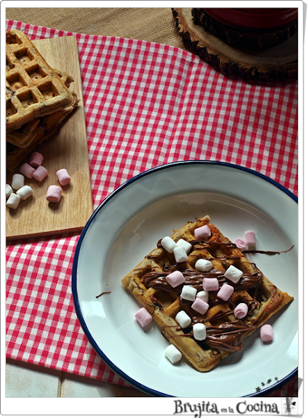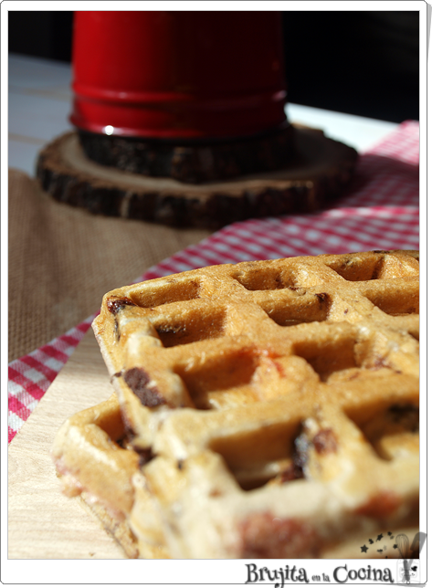Calentamos la gofrera y vertemos porciones de masa.