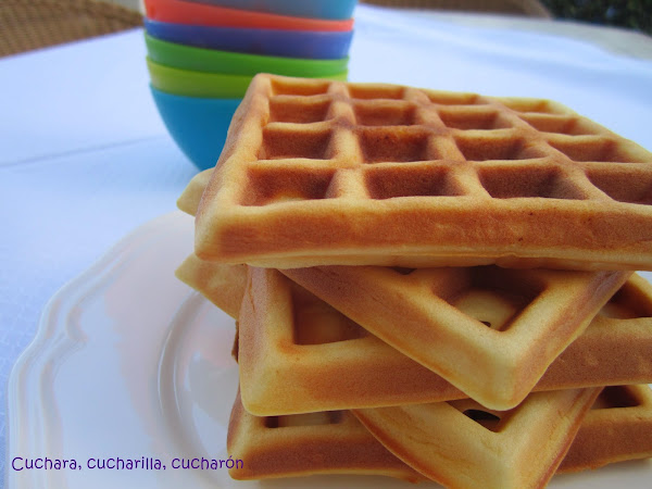 3.- Untamos la gofrera* con mantequilla, vertemos un cucharón generoso de masa, calentamos el tiempo señalado... ¡y a merendar!!!