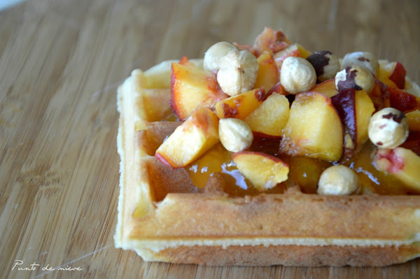 En este caso yo los he preparado con mermelada de melocotón, melocotón y avellanas; y de frutas