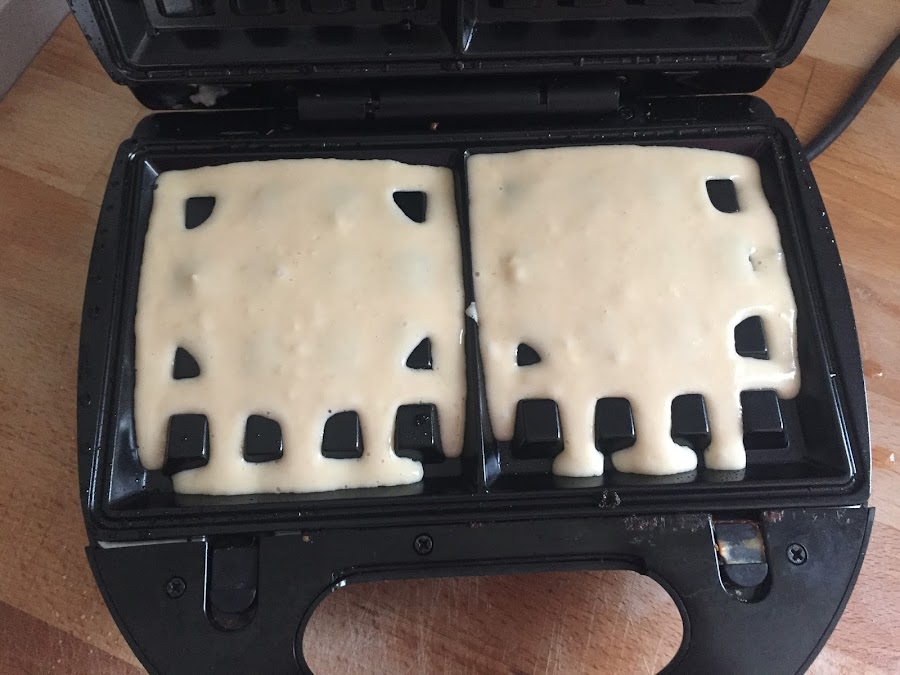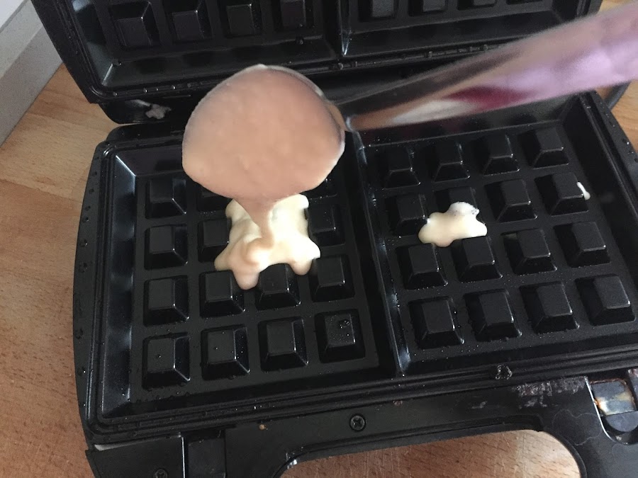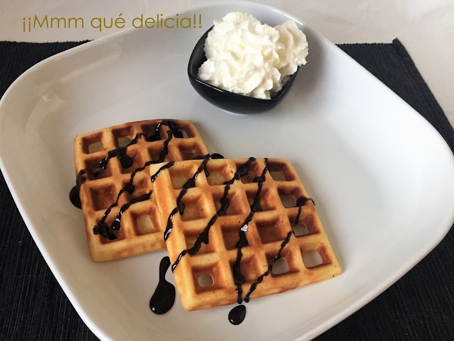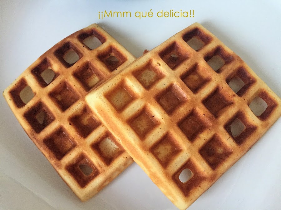Dejamos reposar en el frigorífico 5-10 min mientras se calienta la gofrera, y una vez esté caliente, añadimos 2 o 3 cucharadas de la masa en cada sección. Cerramos la gofrera sin el clip y pasados unos 7 o 8 min ¡¡YA ESTÁ LISTOS PARA TOMAR!!
