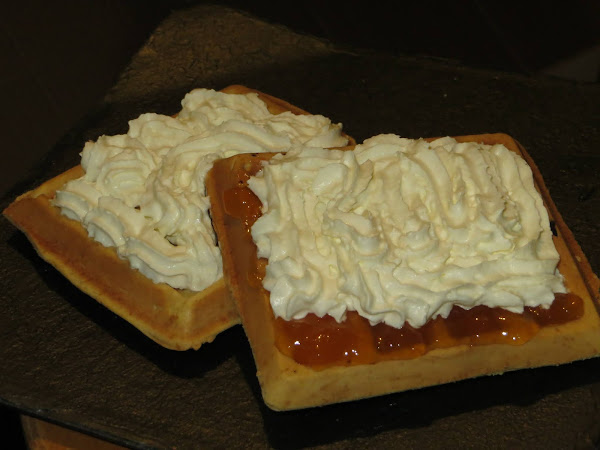 Ponemos en funcionamiento nuestra gofrera y vamos poniendo la masa, la cerramos y seguimos las instrucciones, cuando creamos que ya está listo miramos con el dedo a ver si está lo suficientemente crujiente. Sacamos, decoramos a nuestro gusto y a comer. Con estas medidas salen alrededor de unos 10 gofres.
