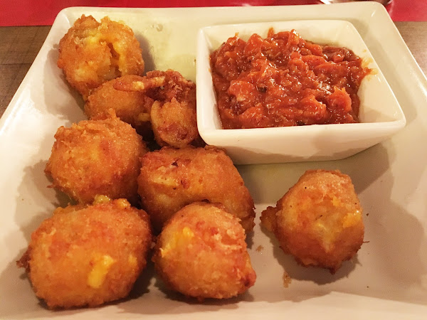 Empezamos con un entrante llamado "fat balls" (con ese nombre ya supondréis que no eran nada ligeras, jajaja) que eran unas bolas rellenas de los clásicos mac&cheese americanos rebozadas y acompañadas de una salsa de bacon. Una bomba, vamos, pero estaban buenísimas.